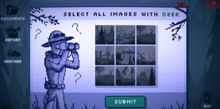Its not a hardcore action game by any means, its more of an atmospheric event driven game where the situation becomes more and more dire. Once you classify a report, you submit it to the central system – it even has a cute little Captcha mechanism (prove ur a human) for submitting your report, it also keeps track of your accuracy and you can view the weather app and you have a radio to keep in contact with your co-workers in the field.