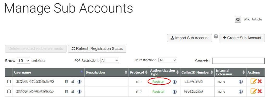 Now its time to do some testing.. If you look in your VOIP.MS (or similar provider) portal – you should see the SIP subaccount has registered. As you can see in the screenshot below – both SIP subaccounts have registered.